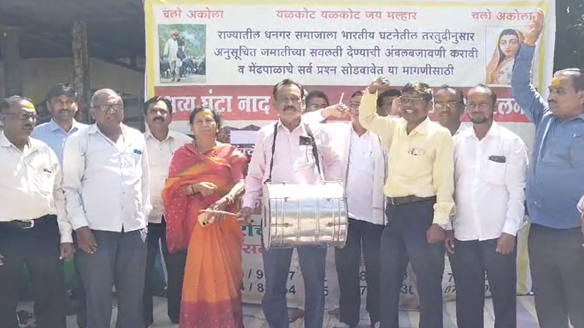 Akola: धनगर समाज को अनुसूचित जनजाति में आरक्षण दिये जाने की मांग को लेकर ढोल बजाओ आंदोलन