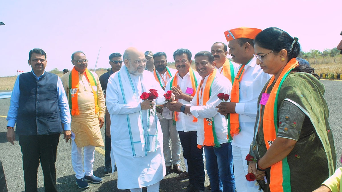अकोला पहुंचे केंद्रीय गृह मंत्री अमित शाह, कार्यकर्ताओं ने किया जोरदार स्वागत
