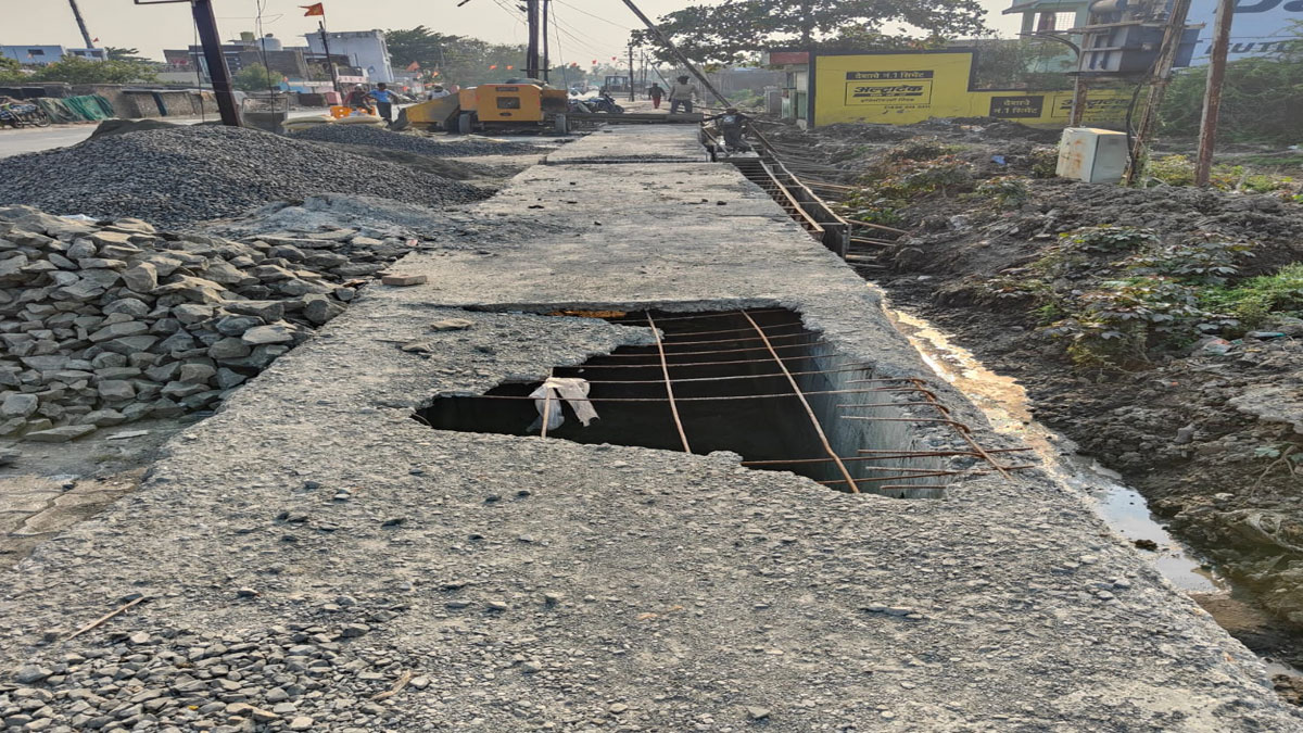 Akola: छह माह में ही मुख्य सड़क की नाली का स्लैब टूटा, पेवर्स उखड़ गये