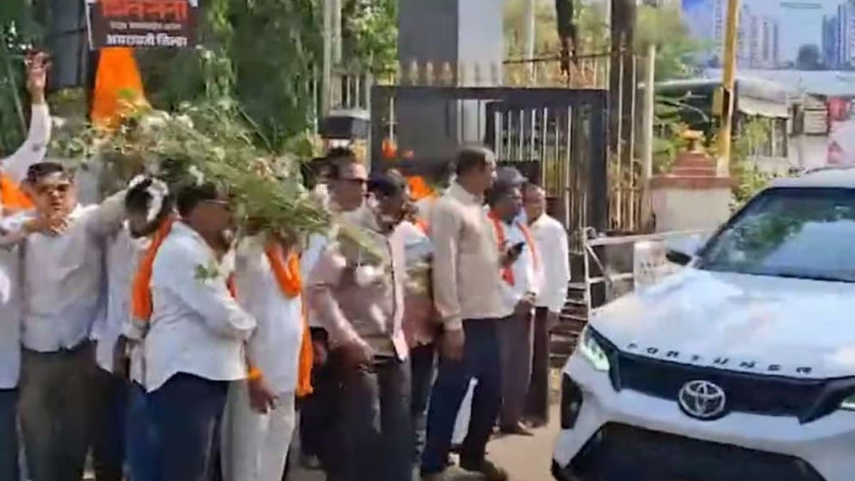 Amravati: कपास और तुअर के दामों को लेकर ठाकरे गट आक्रामक, दादा भूसे के काफिले पर फेंकी फसल