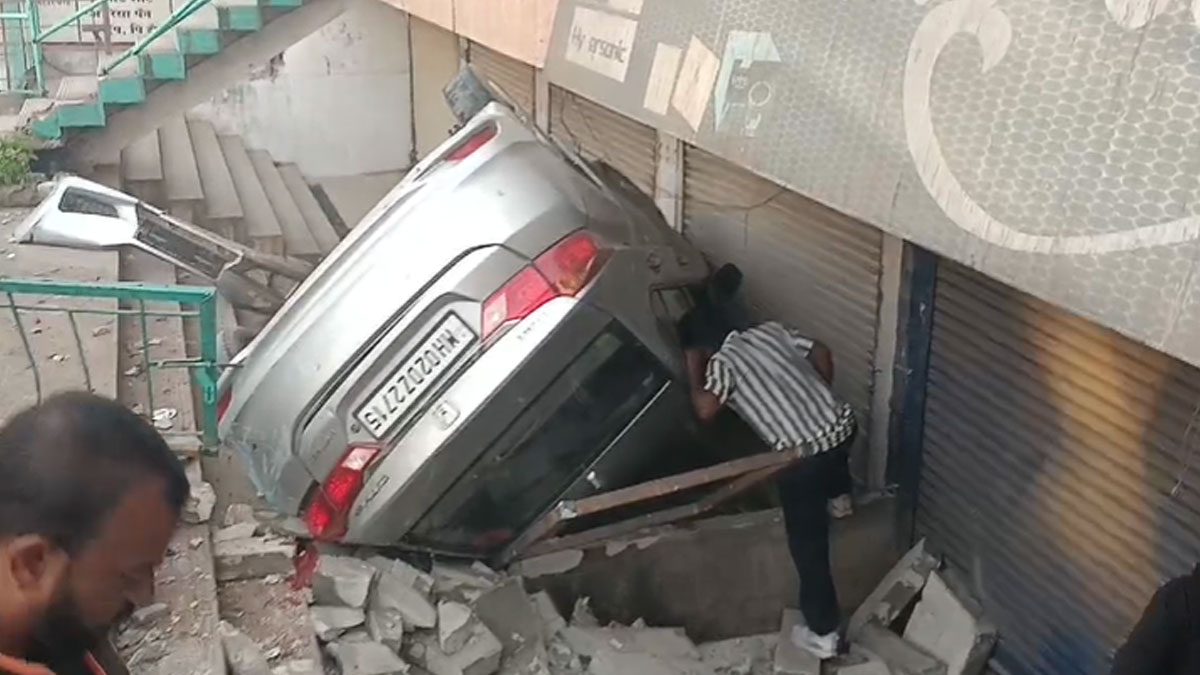 दुकान में जा घुसी तेज रफ्तार कार, चालक हुआ जख्मी, सौभाग्य से कोई जनहानि नहीं