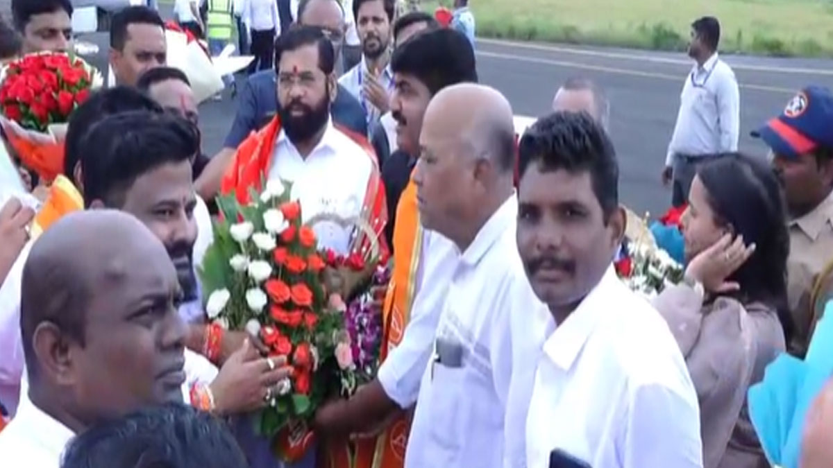 बेलोरा हवाई अड्डे पर मुख्यमंत्री एकनाथ शिंदे का आगमन, फडणवीस और अजित पवार भी साथ