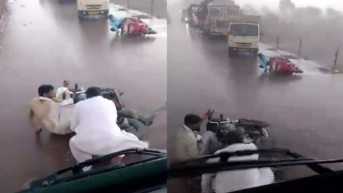 Video: तेज बारिश और आंधी में रुके वाहनों के पहले, उड़ने लगे लोग; वीडियो हुआ वायरल