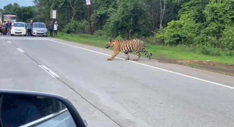 जंगल का राजा सड़क पर करें इसलिए सड़क पर रुका ट्रैफिक