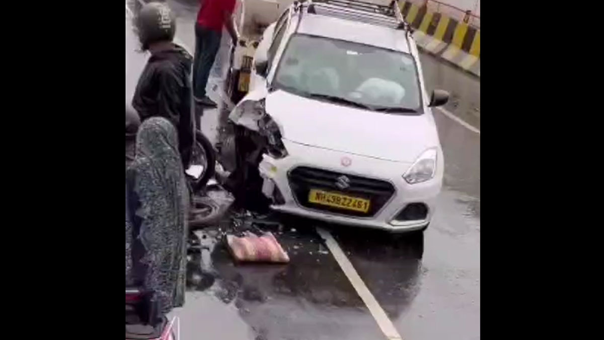 सदर फ्लाईओवर तेज रफ्तार कार बाइक को मारी टक्कर, दुपहिया चालक गंभीर रूप से घायल