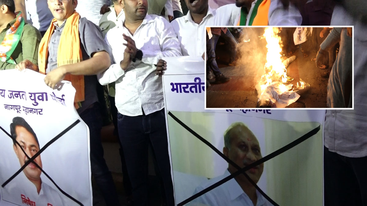 मुत्तेमवार के बयान पर युवा मोर्चा आक्रामक, पुतला फूंककर जताया विरोध