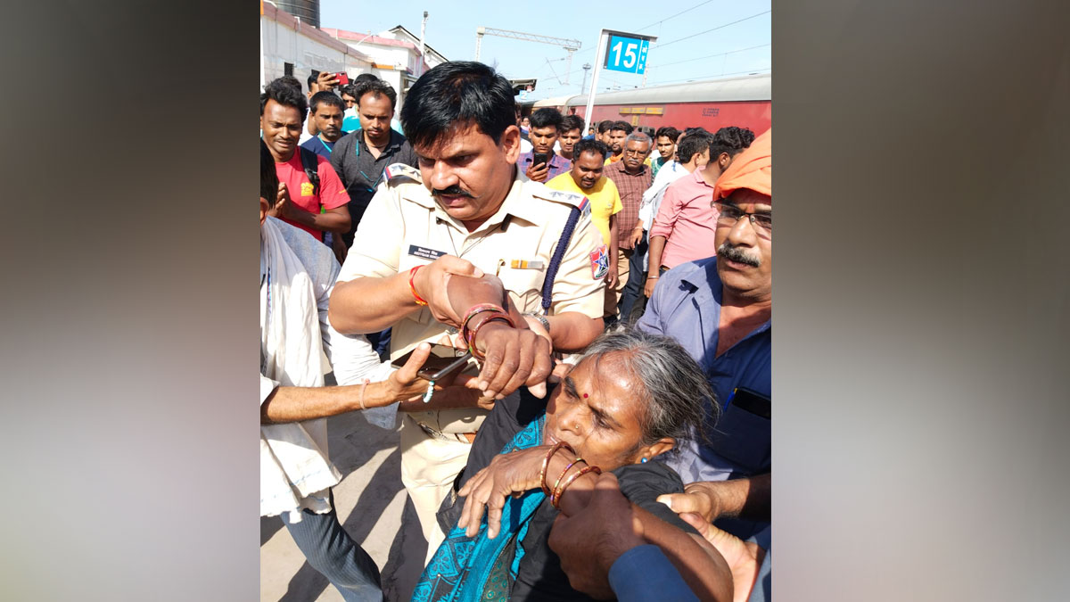 चलती ट्रेन में चढ़ने की कोशिश बुजुर्ग का फिसला पैर, ट्रेन और ट्रैक के बीच फंसी
