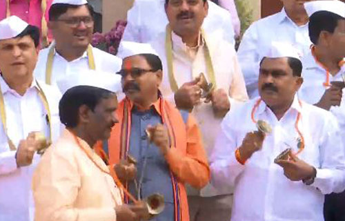 Video: गायरान मुद्दे पर विपक्ष का अनोखा प्रदर्शन, विधानसभा के बाहर किया भजन कीर्तन