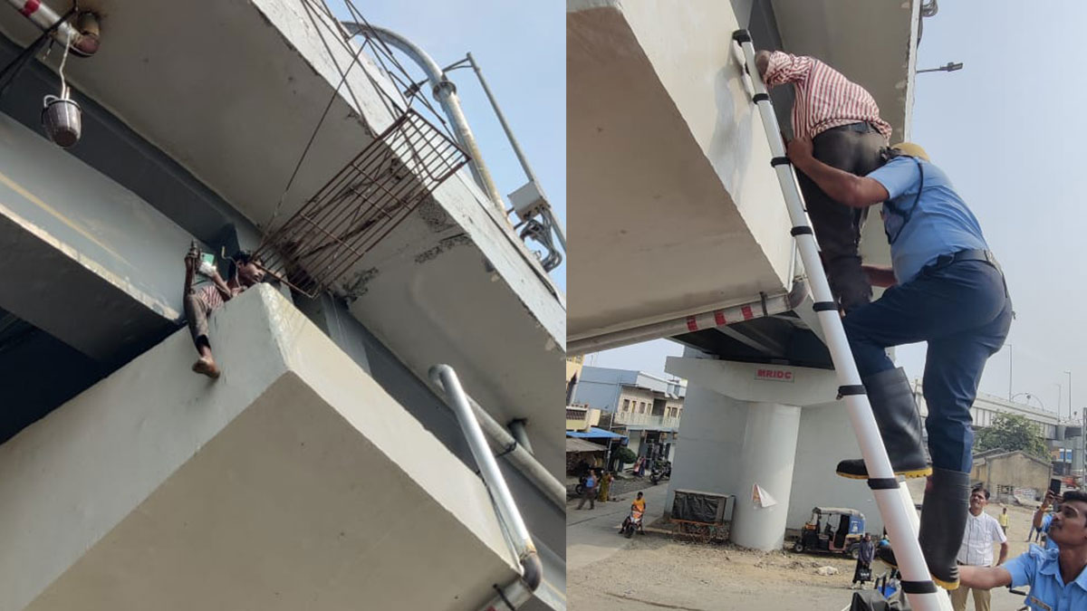 पारडी फ्लाईओवर पर बड़ा हादसा, व्यक्ति पिलर पर अटका; सुरक्षित किया गया रेस्क्यू