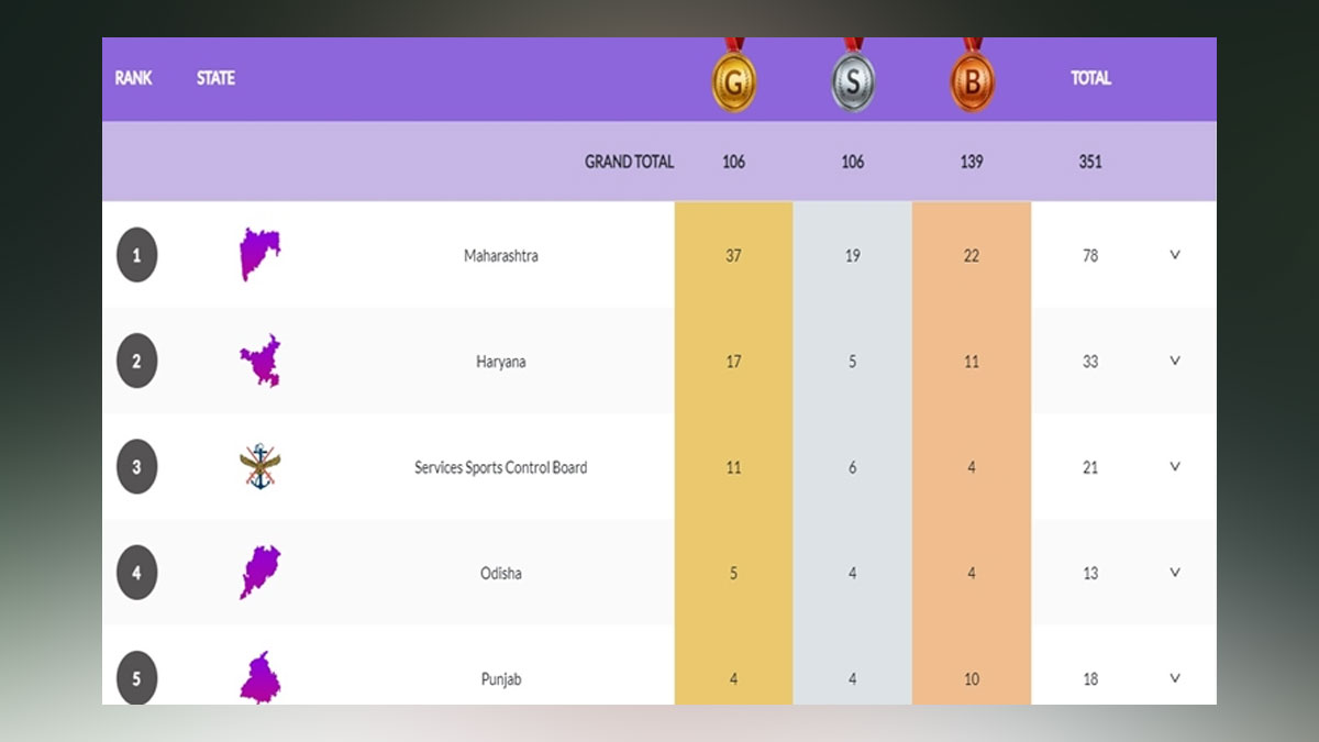 राष्ट्रीय खेलों में महाराष्ट्र 78 पदकों के साथ पदक तालिका में शीर्ष पर