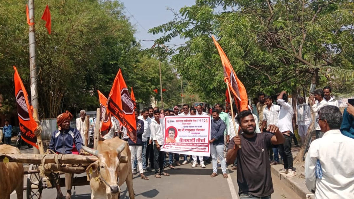 फसल बीमा समेत विभिन्न मांगों को लेकर मनसे और किसानों ने निकाला ‘बैलगाड़ी मार्च’