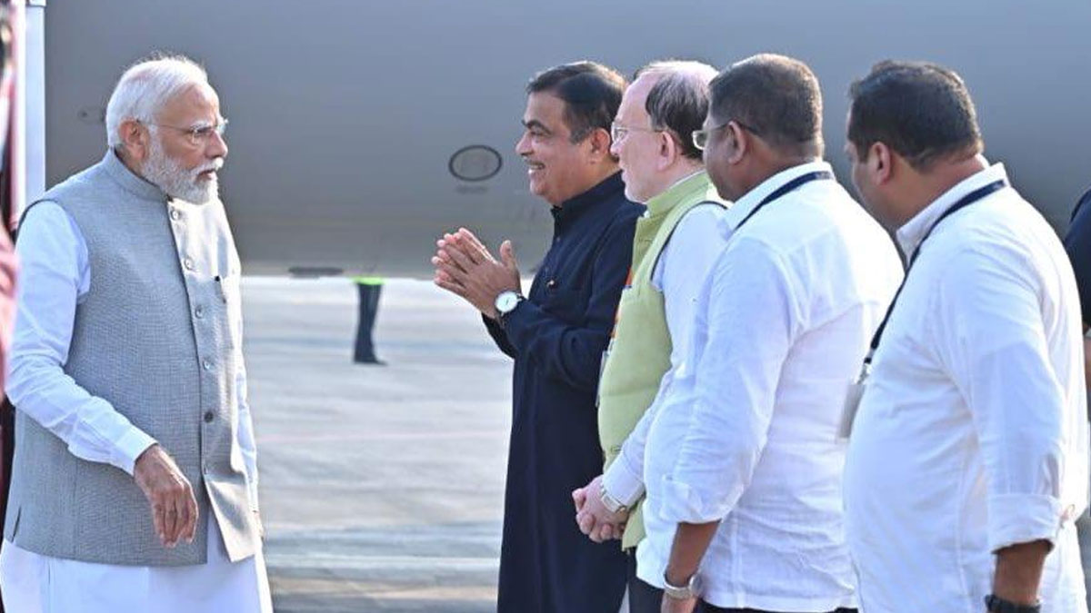 प्रधानमंत्री नरेंद्र मोदी नागपुर एयरपोर्ट पहुंचे, केंद्रीय मंत्री नितिन गडकरी ने किया स्वागत