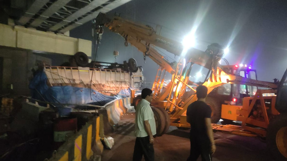 पारडी फ्लाईओवर पर बड़ा हादसा, अनाज से भरा ट्रक अनियंत्रित होकर पलटा