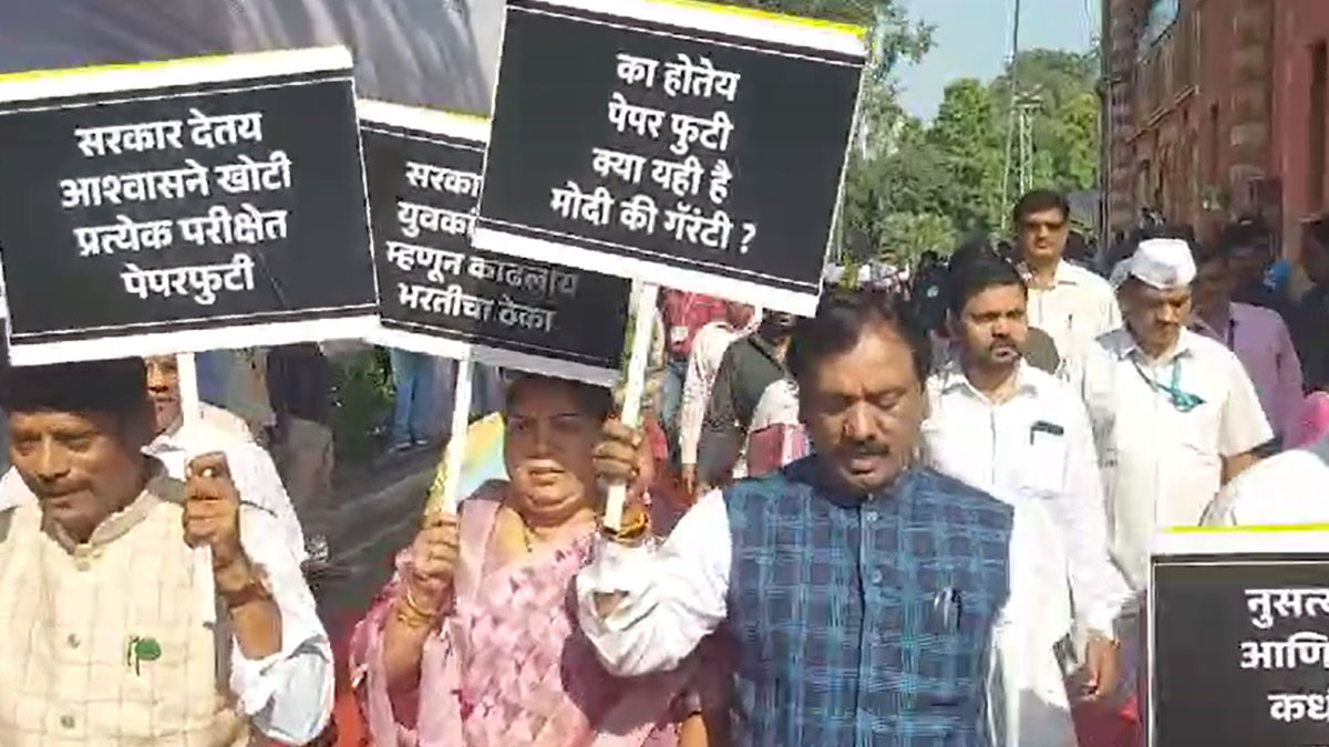 पेपर लीक को लेकर विपक्ष का सरकार के खिलाफ प्रदर्शन, हुई जांच की मांग, लगाए नारे