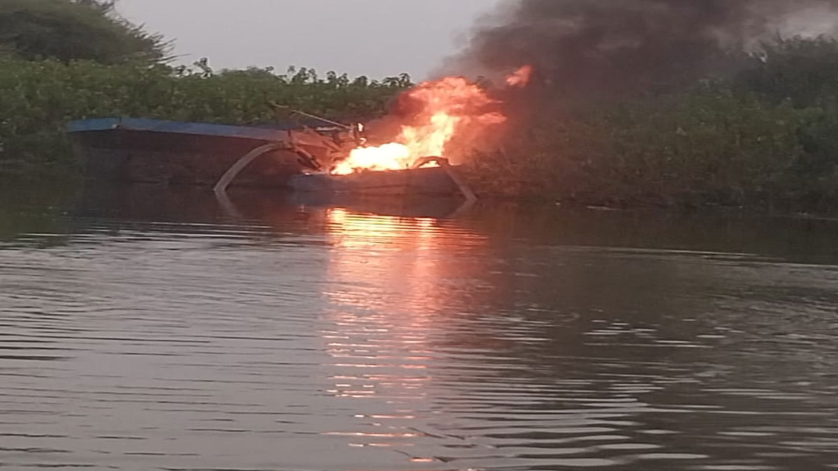 Buldhana: अवैध रेत खनन कर रहे तीन नावों पर कार्रवाई, विस्फोटक लगाकर किया गया ध्वस्त