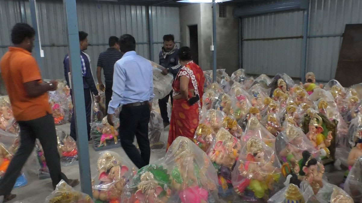 पीओपी मूर्ति विक्रेताओं पर चला मनपा का डंडा, बजरिया से 350 मूर्ति की जब्त