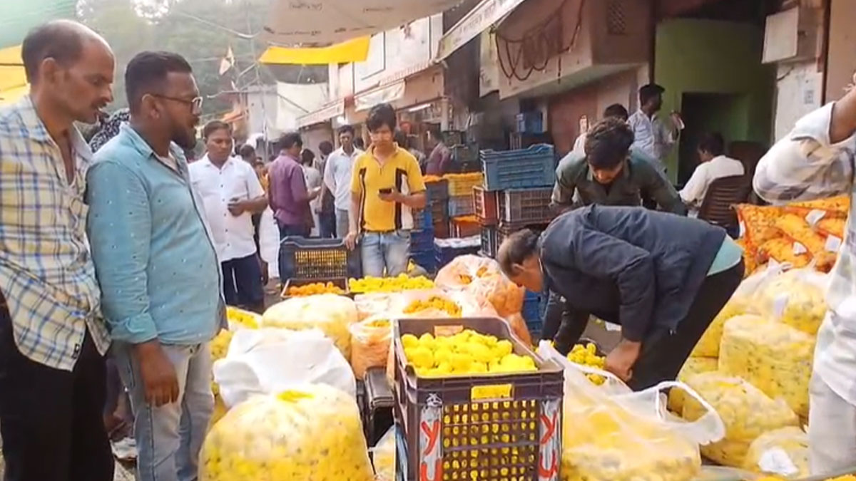 नागपुर शहर के फूल बाजार में खरीददारों की लगी भीड़, गेंदा और कमल की रिकॉर्ड तोड़ मांग